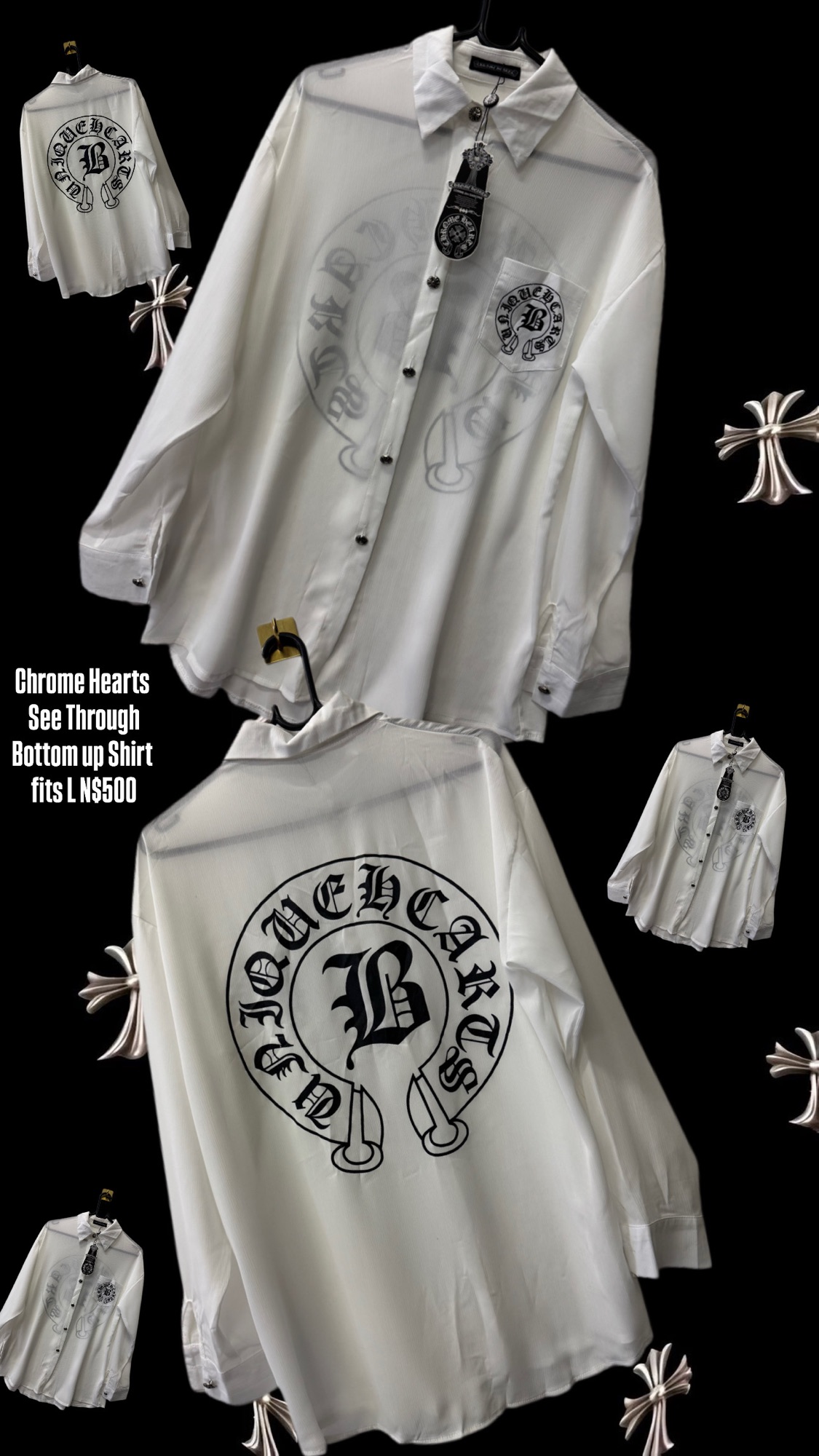 Chrome Hearts See Through Bottom up Shirt fits L N$500
