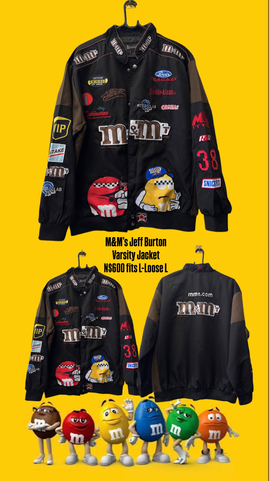 M&M’s Jeff Burton Varsity Jacket N$600 fits L-Loose L