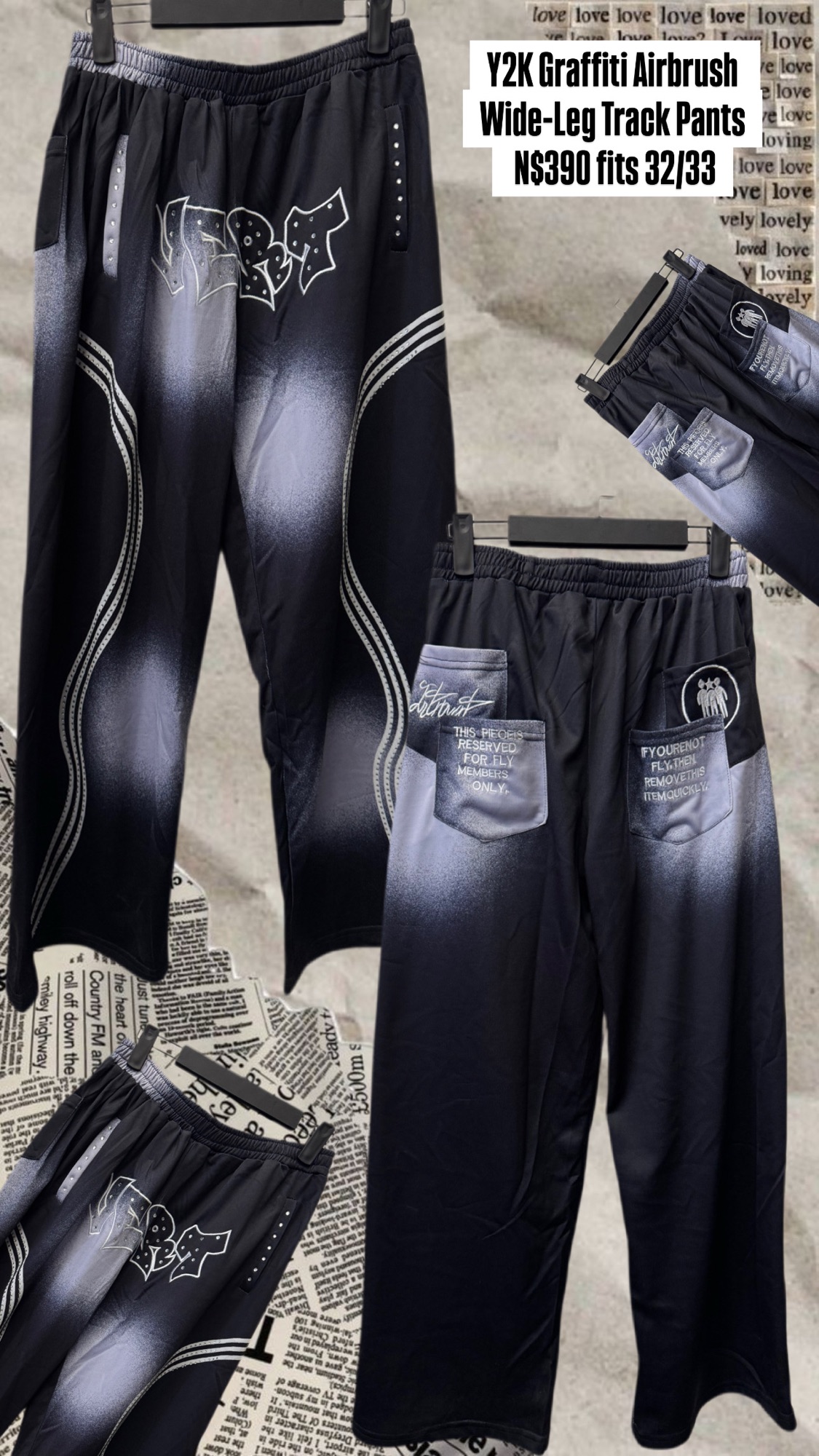 Y2K Graffiti Airbrush Wide-Leg Track Pants N$390 fits 32/33