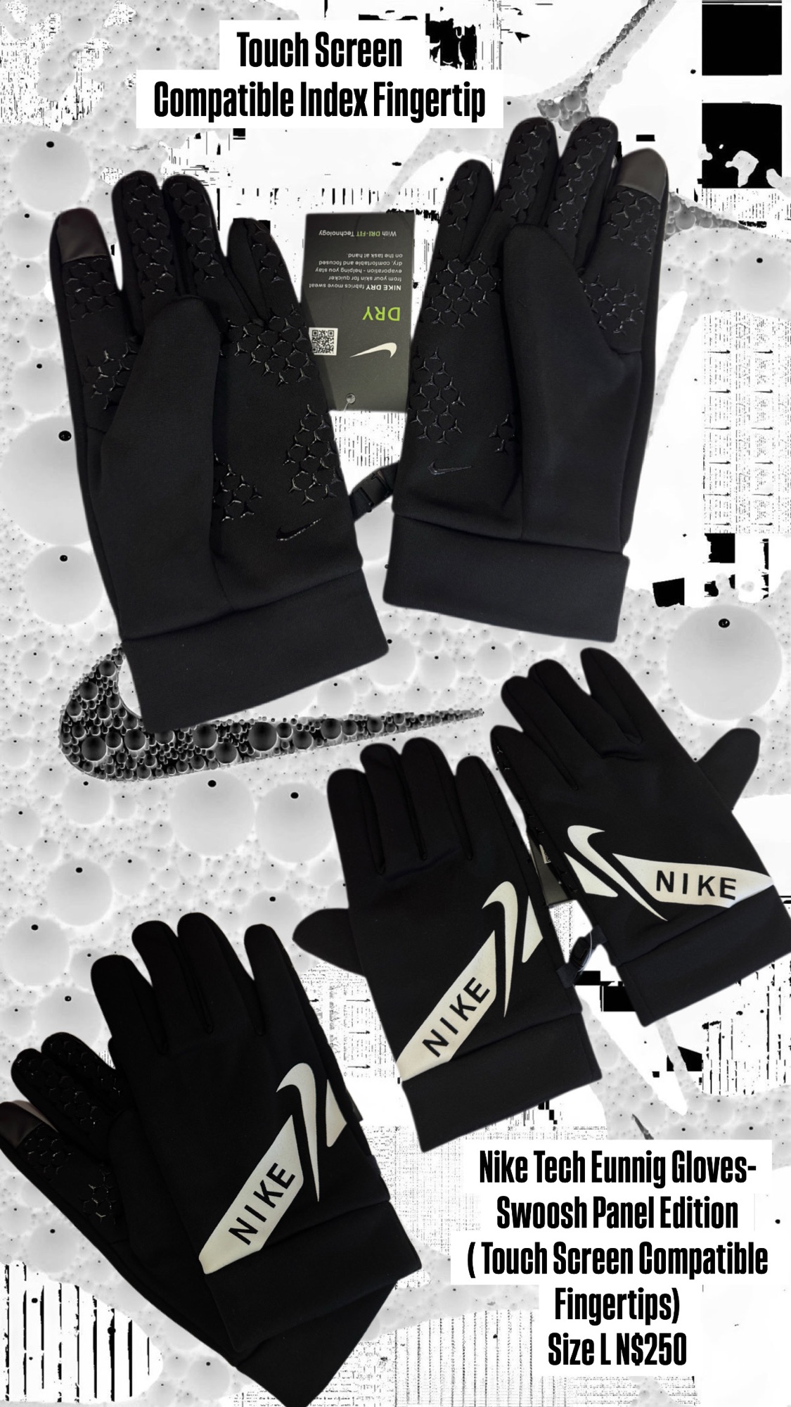 Nike Tech Eunnig Gloves-Swoosh Panel Edition( Touch Screen Compatible Fingertips) Size L N$250