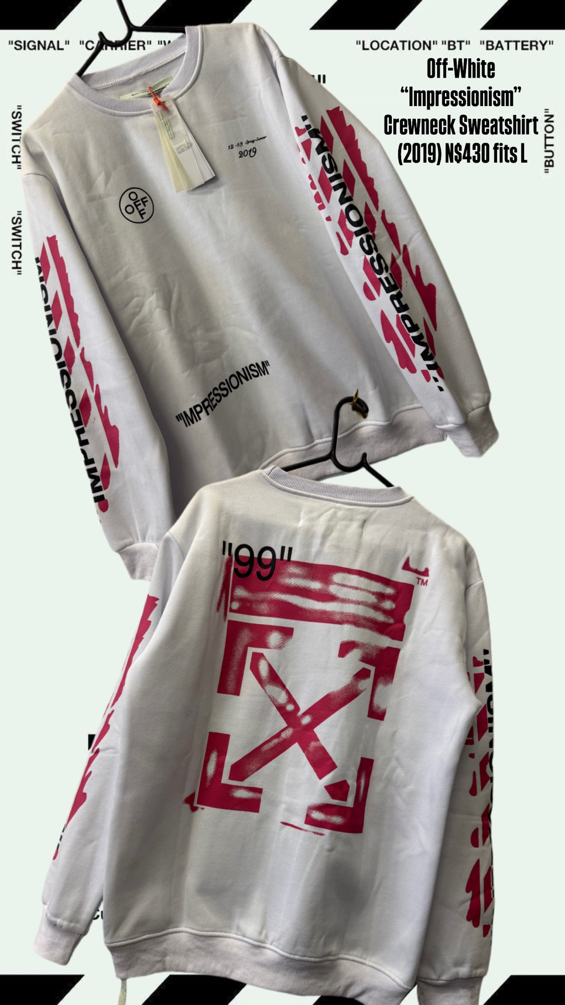 Off-White “Impressionism” Crewneck Sweatshirt (White/Red, 2019) N$430 fits L