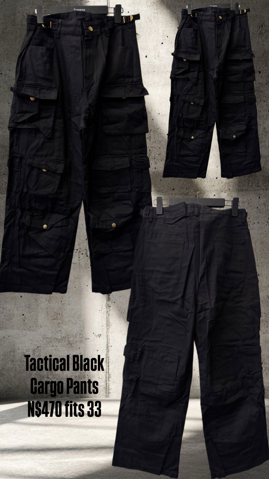 Tactical Black Cargo Pants N$470 fits 33