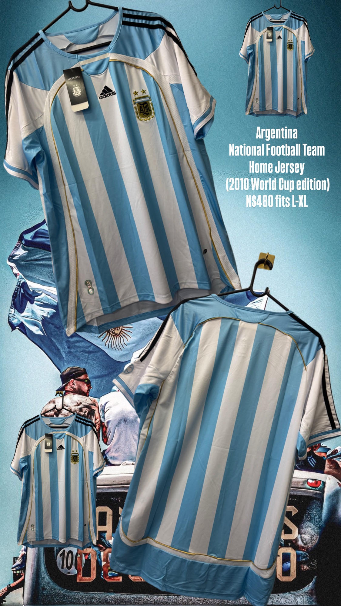 Argentina National Football Team Home Jersey (2010 World Cup edition) N$480 fits L-XL