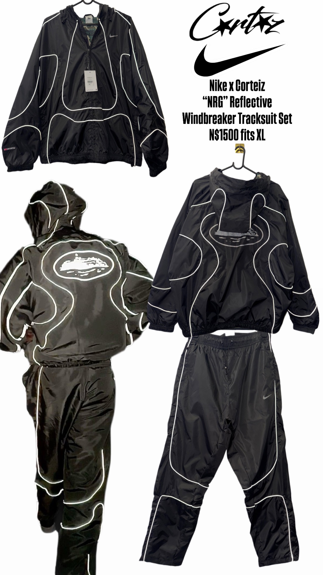 Nike x Corteiz “NRG” Reflective Tracksuit Set N$1500 fits XL