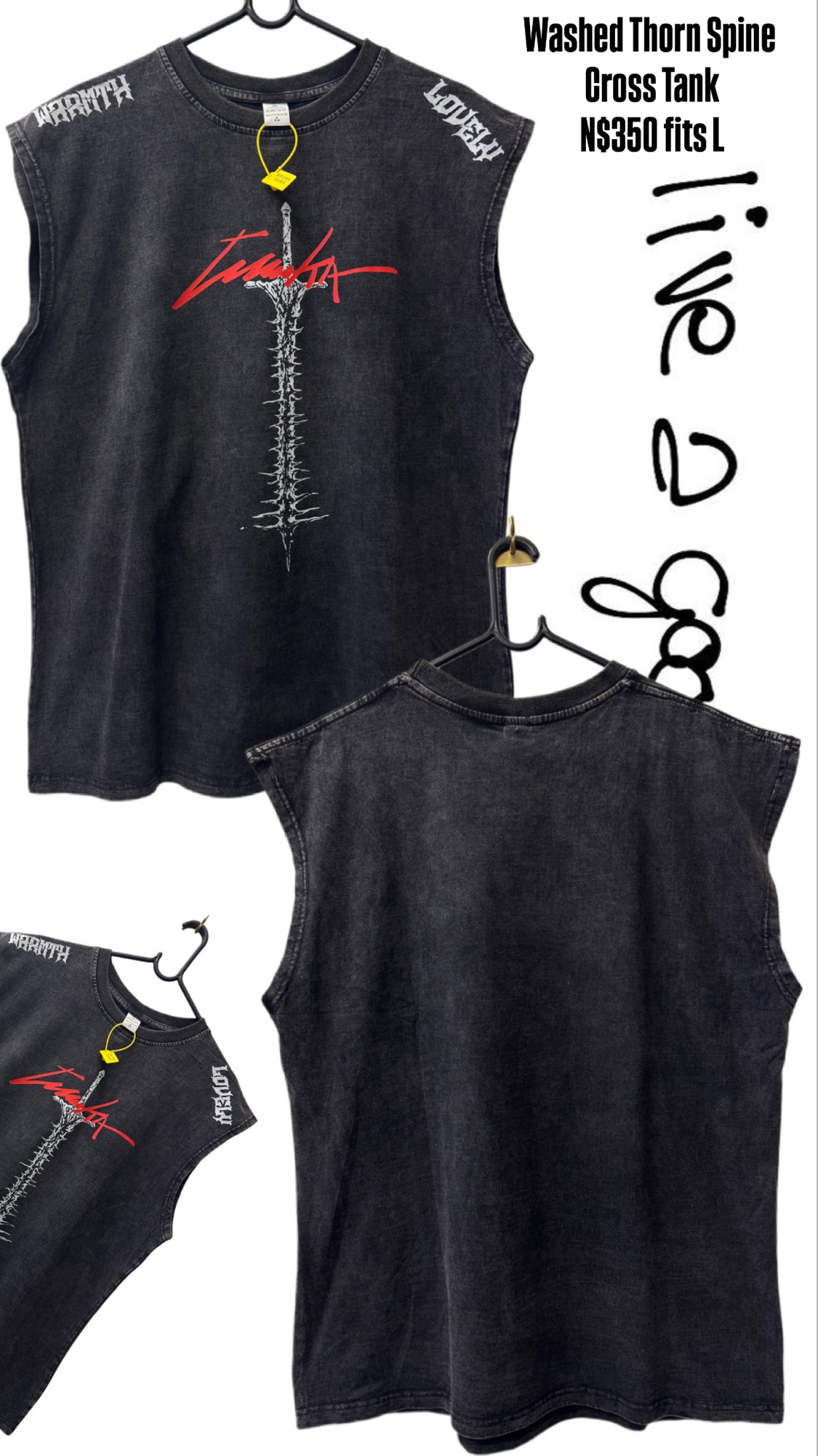 Washed Thorn Spine Cross Tank N$350 fits L