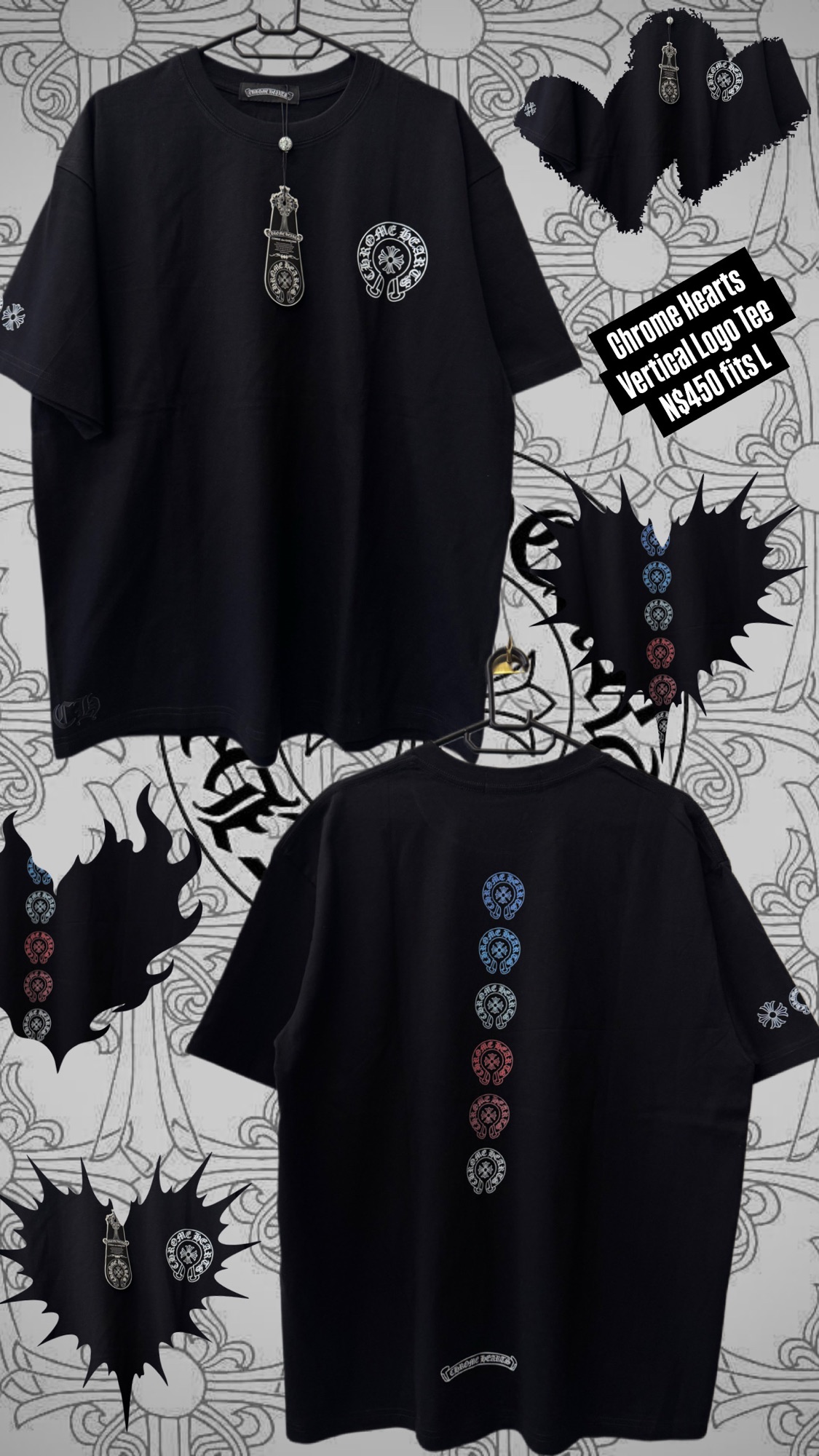 Chrome Hearts Vertical Logo Tee N$450 fits L