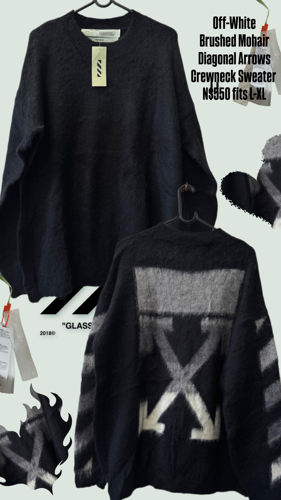 Off-White Brushed Mohair Diagonal Arrows Crewneck Sweater N$550 fits L-XL