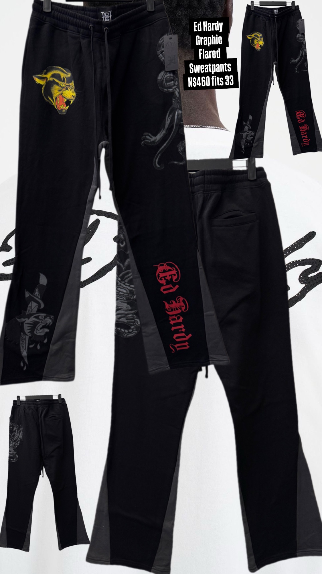 Ed Hardy Graphic Flared Sweatpants N$460 fits 33