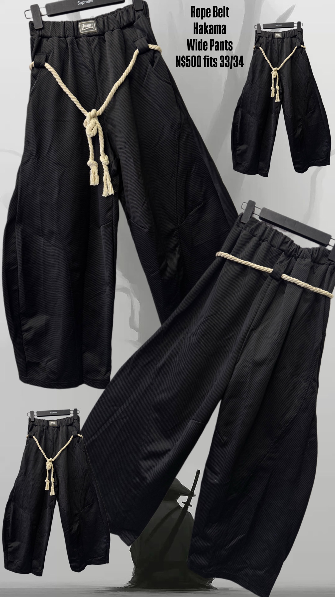 Rope Belt Hakama Wide Pants N$500 fits 33/34
