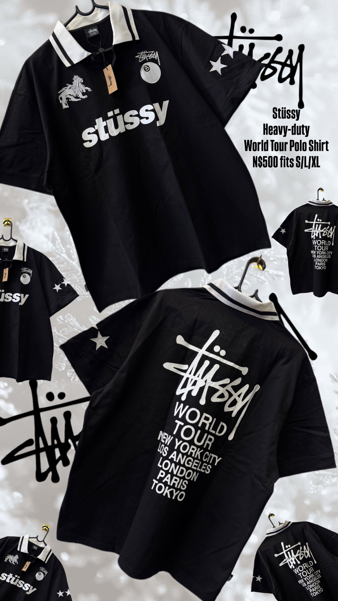 Stüssy Heavy-duty World Tour Polo Shirt N$500 fits S/L/XL