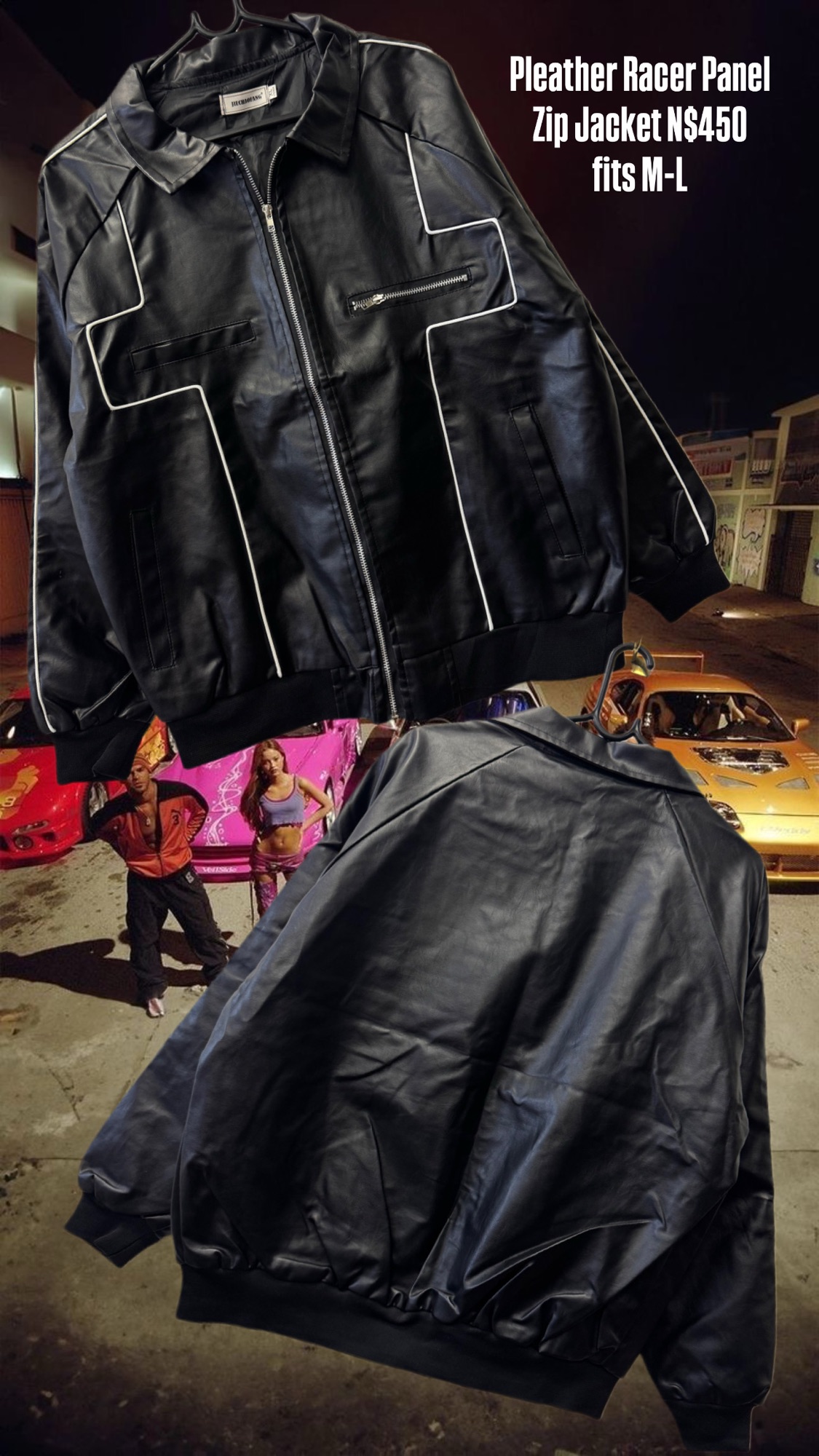 Pleather Racer Panel Zip Jacket N$450 fits M-L