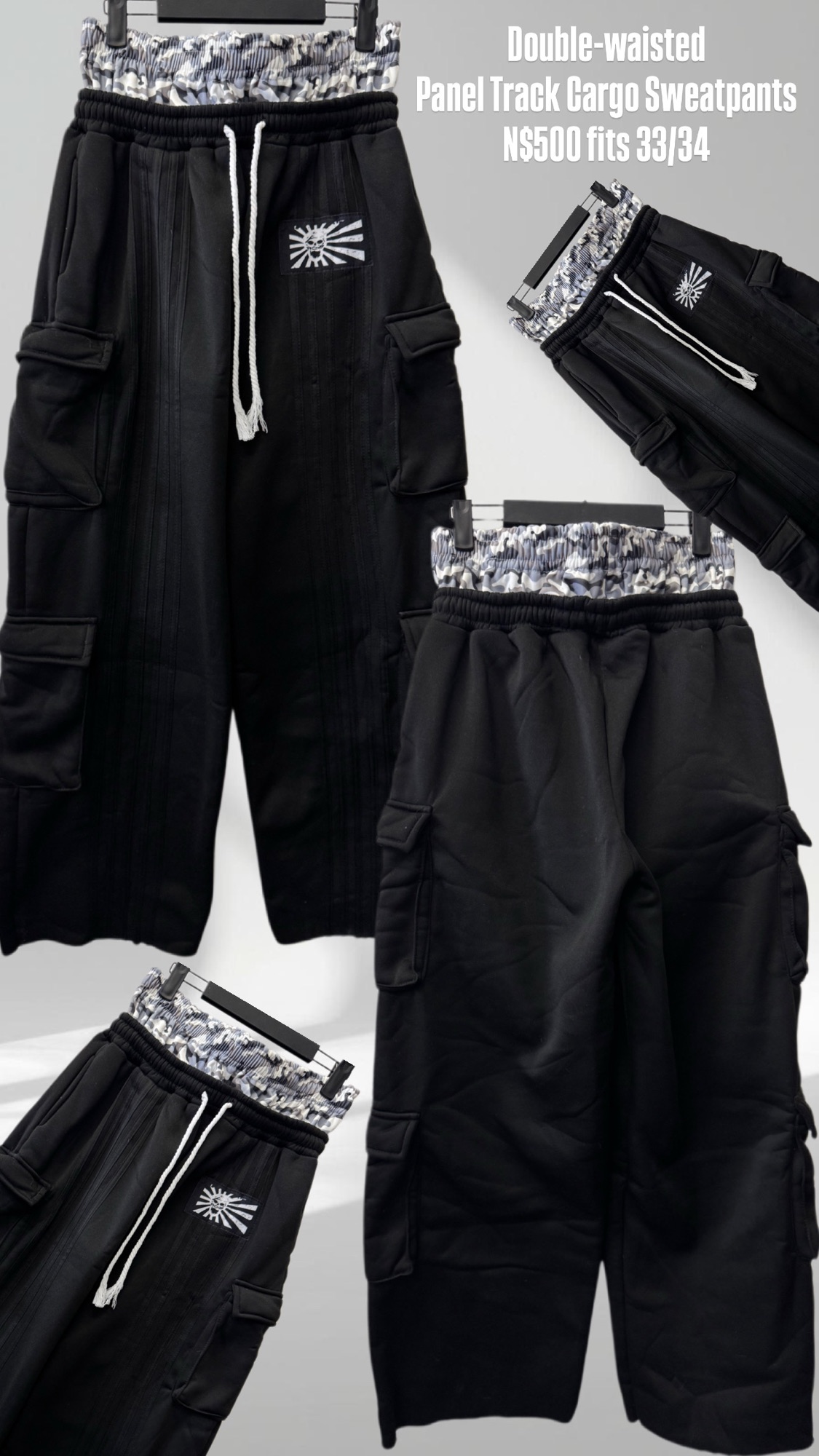 Double-waisted Panel Track Cargo Sweatpants N$500 fits 33/34
