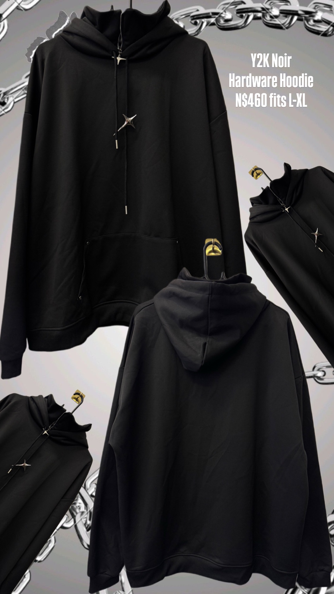 Y2K Noir Hardware Hoodie N$460 fits L-XL