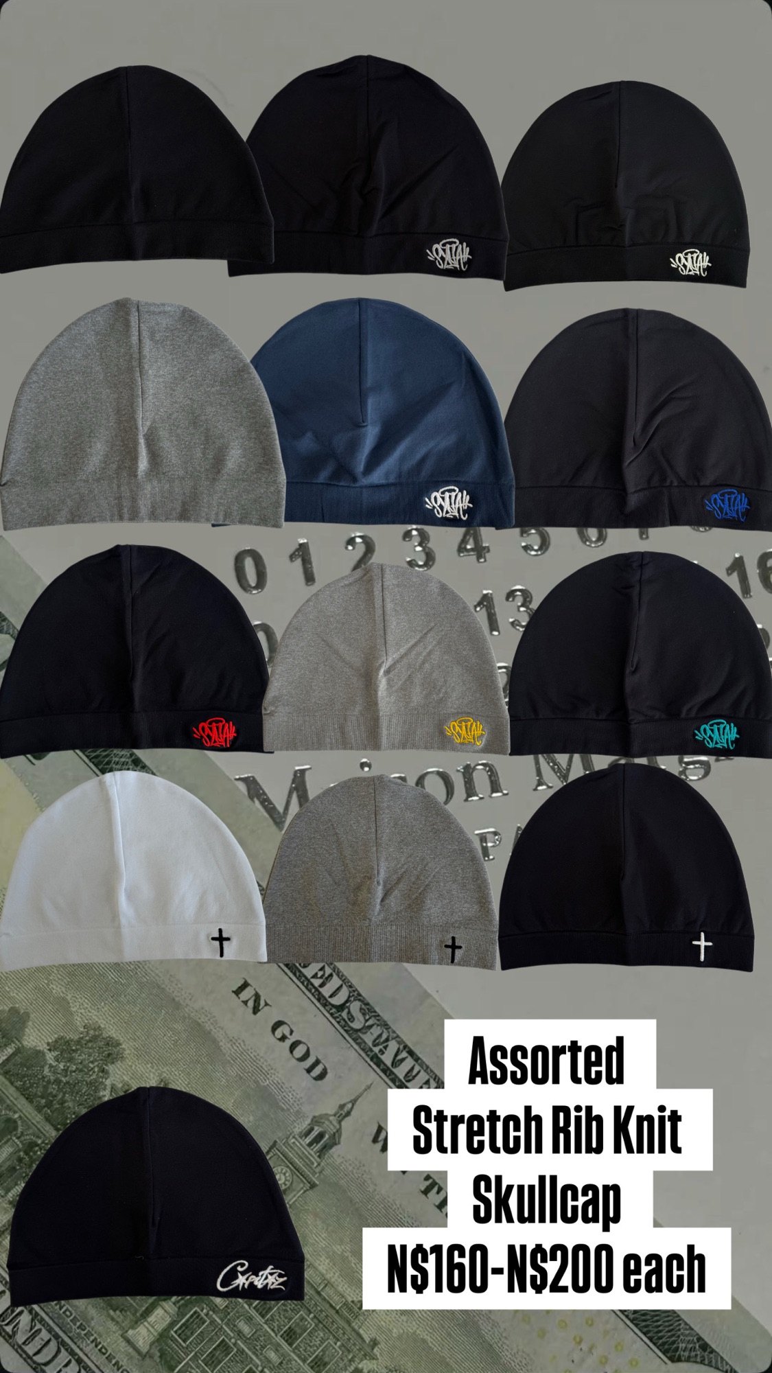 Assorted Stretch Rib Knit Skullcap N$160-N$200 each (Blank/Corteiz/ Synaworld/Cross)
